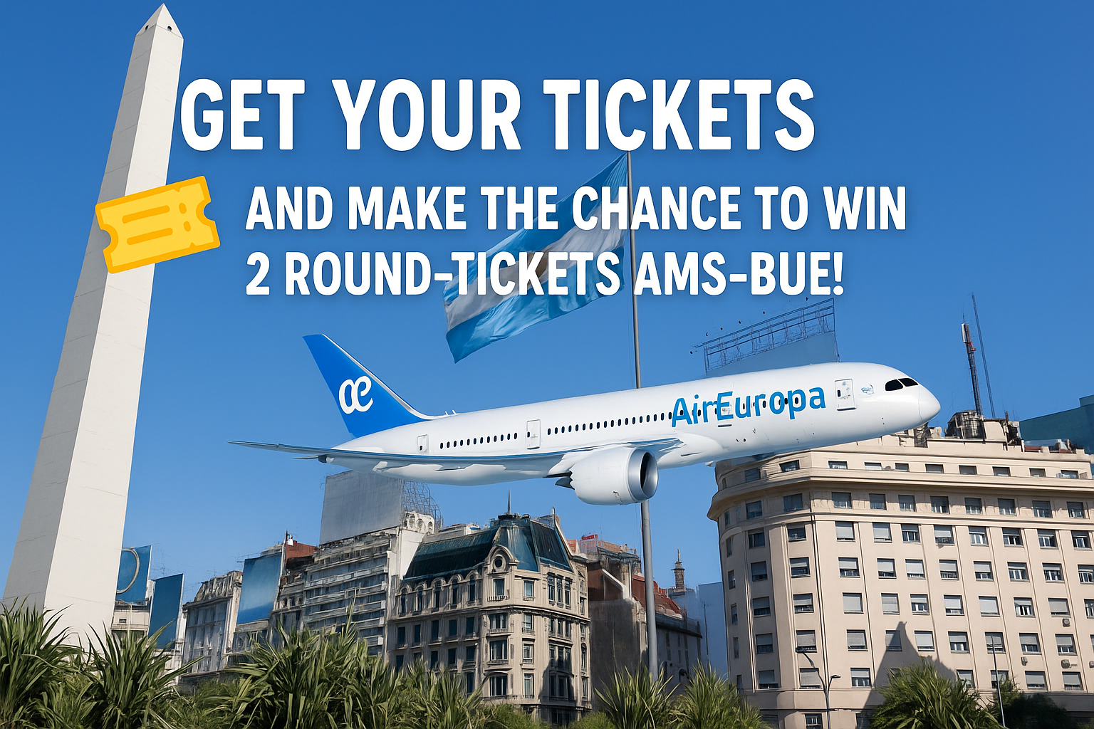 And that’s not all! By getting your ticket, you’ll automatically enter for a chance to WIN 2 round-trip tickets AMS–BUE with Air Europa! (Terms & conditions below)