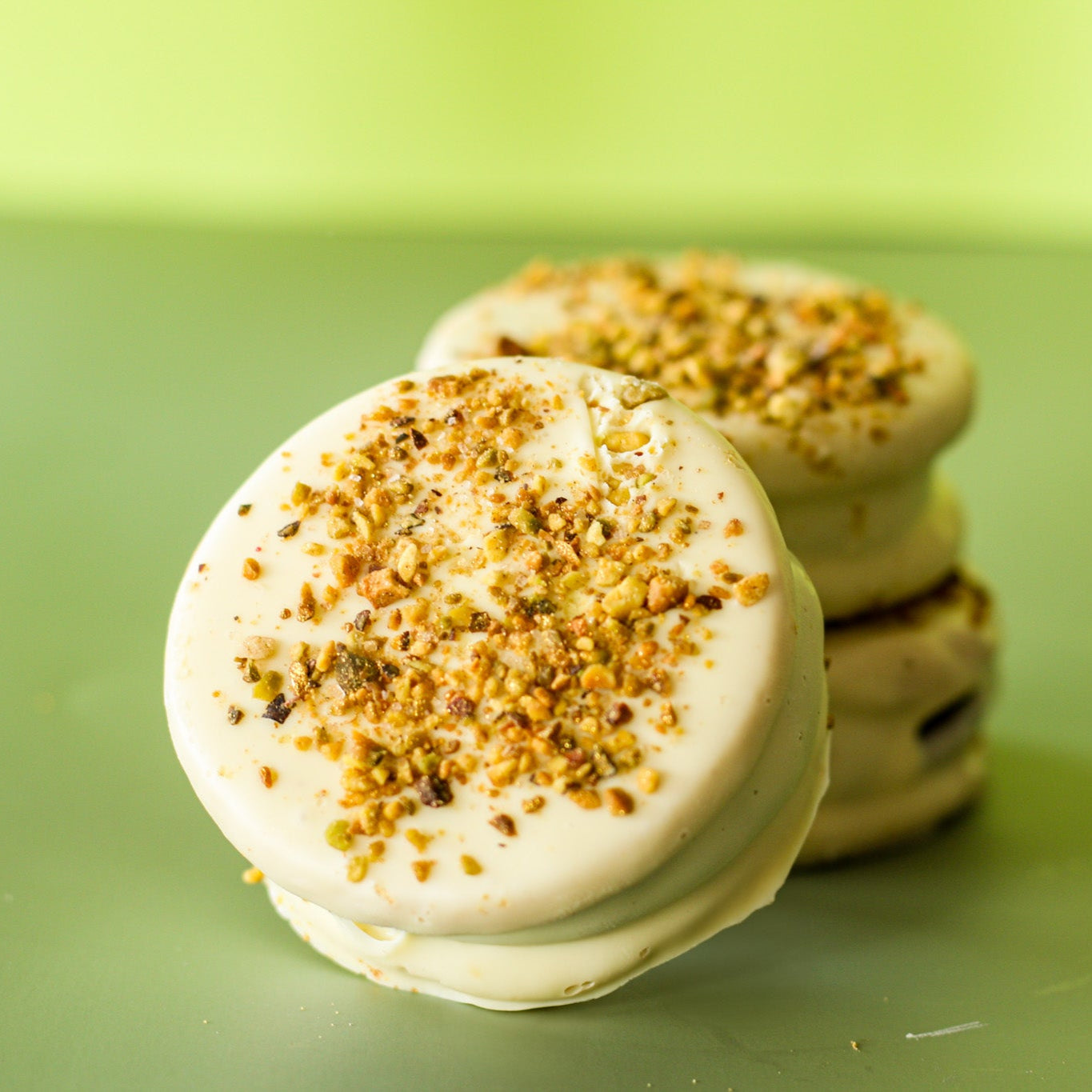 Flour, butter, dulce de leche (full fat milk 61%, sugar, skimmed milk powder, glucose, agar-agar), icing sugar, eggs, pistachio flour, cornstarch, white chocolate (sugar, cocoa butter, whole milk powder, emulsifier, soy lecithin, natural vanilla flavor), 100% pistachio paste, sugar, baking powder, baking soda, salt, food colouring.