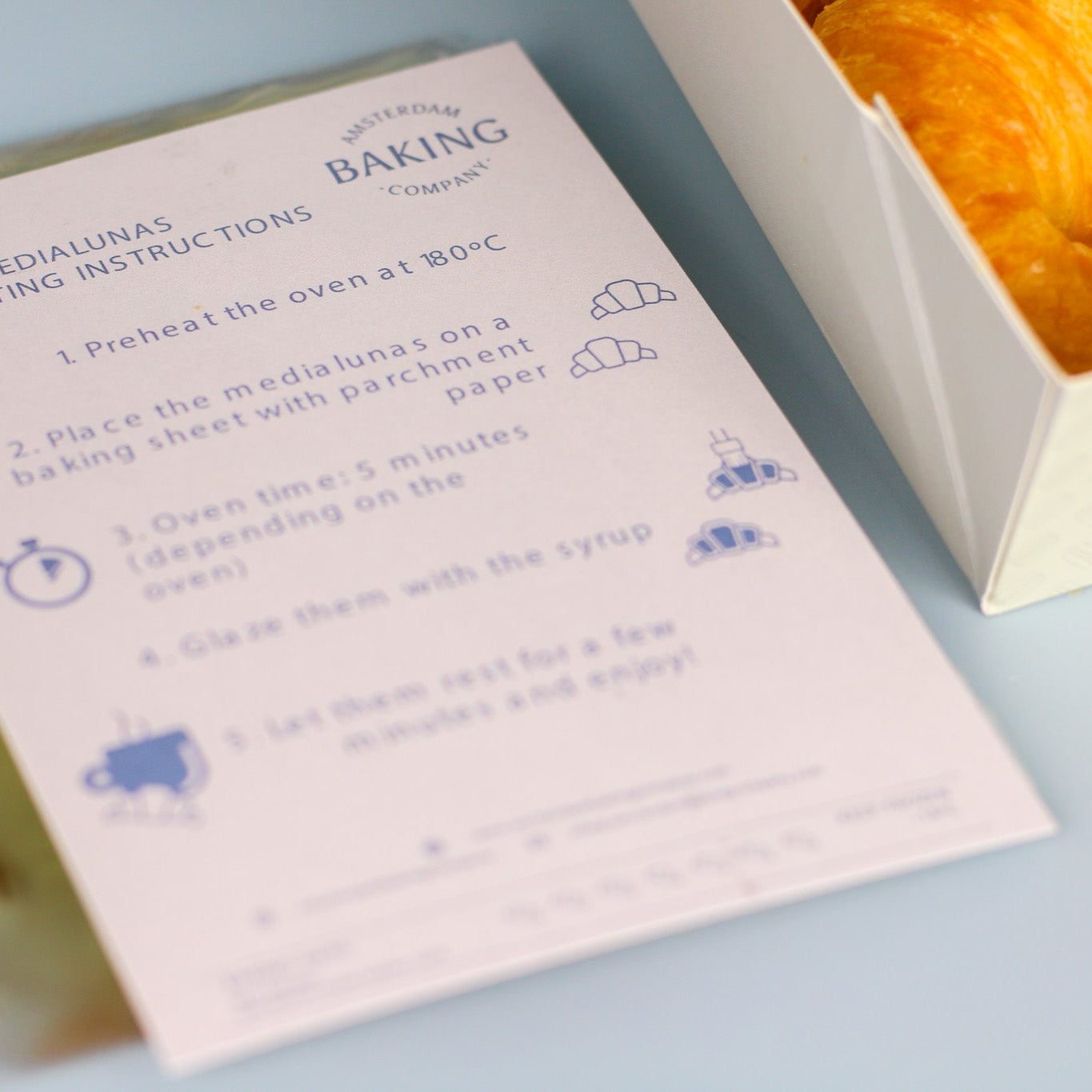Alongside the medialunas, you will receive a sealed bag with syrup and baking instructions.