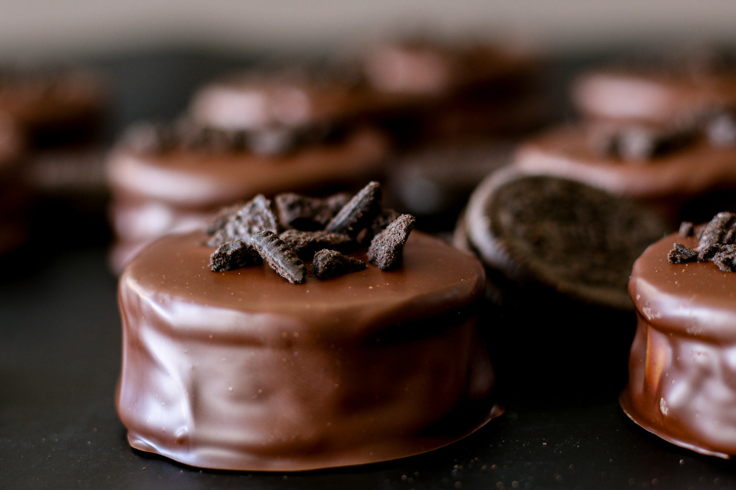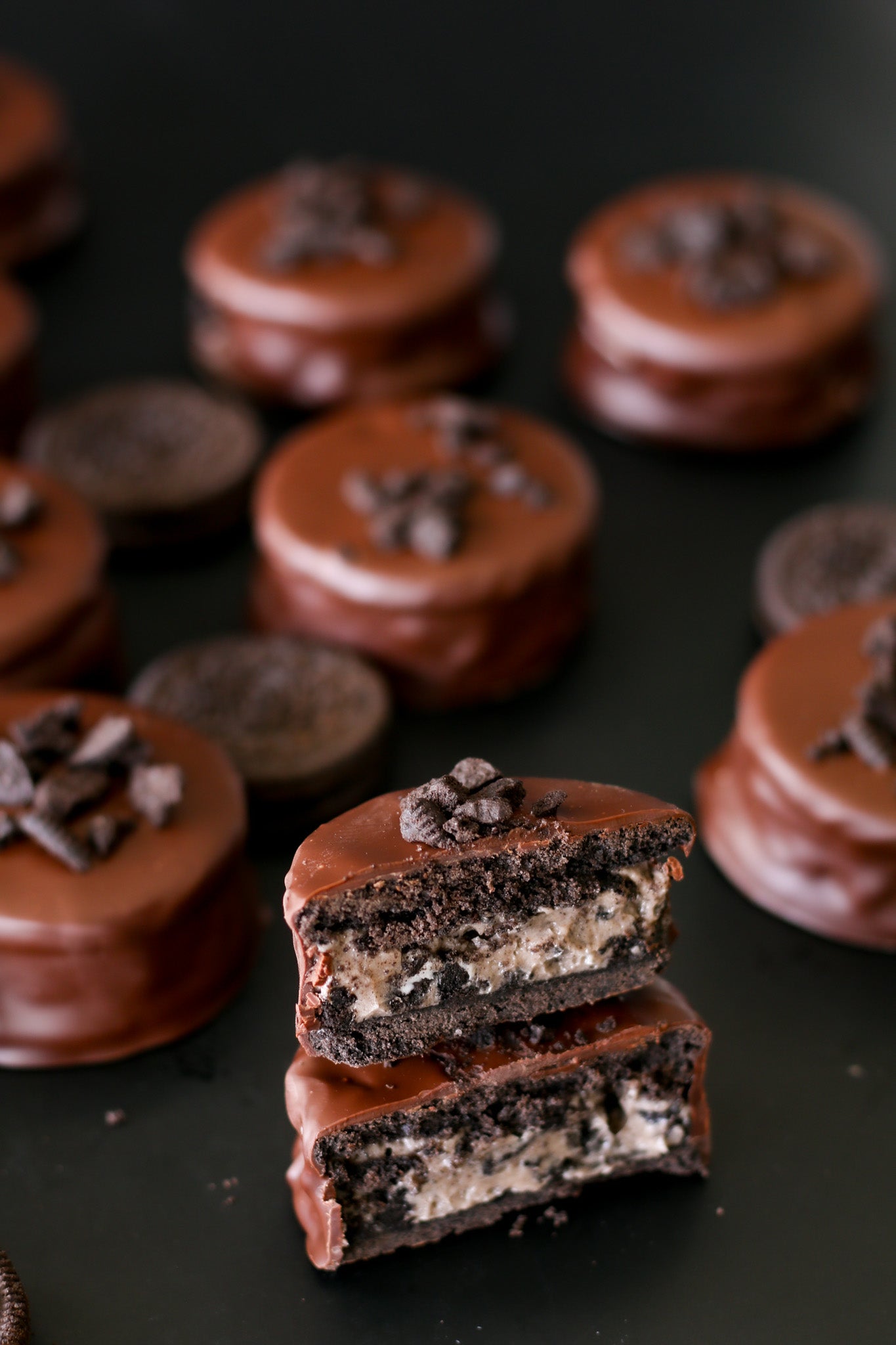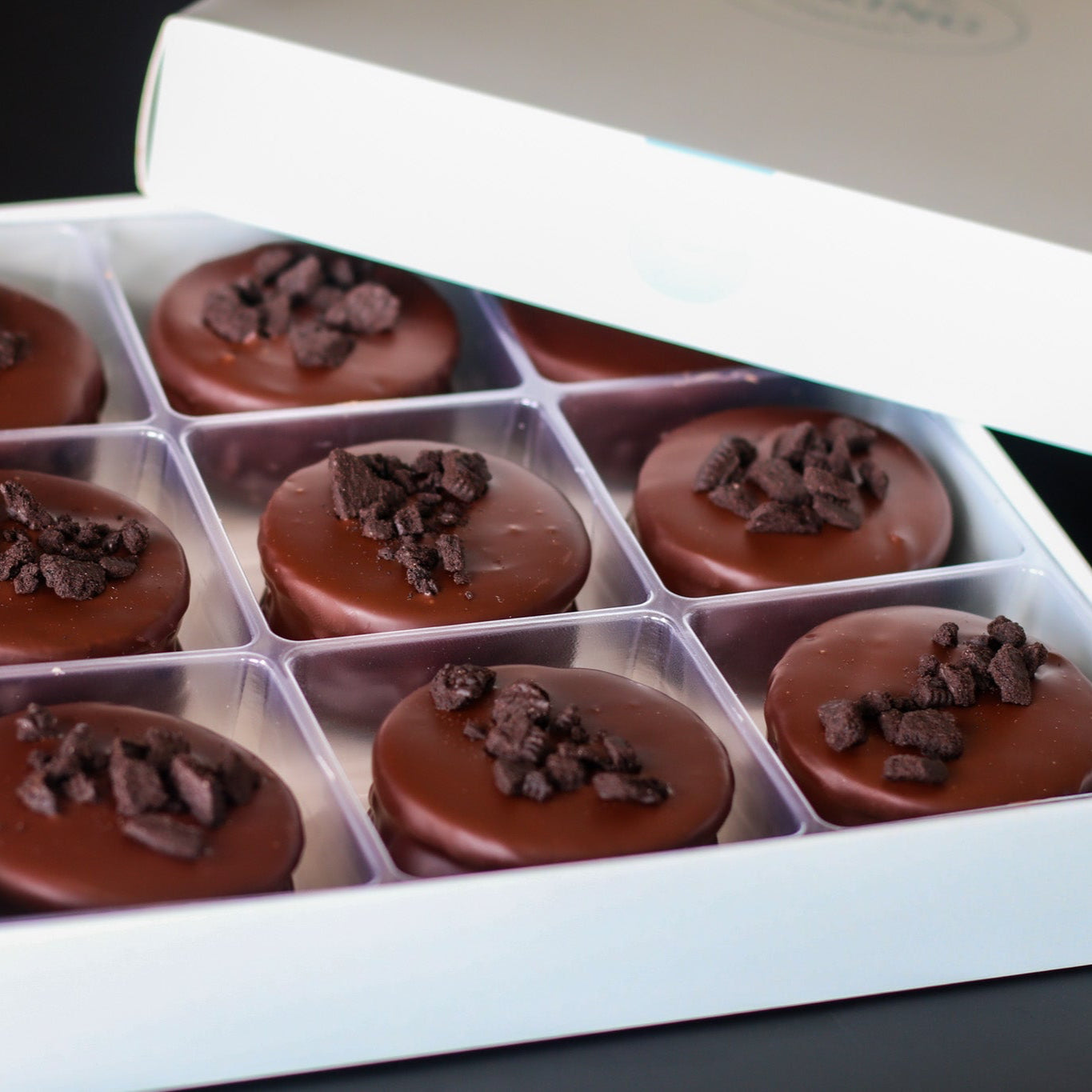 Two soft chocolate biscuits sandwich a creamy cookies & cream filling, all covered in rich, intense Belgian dark chocolate.
