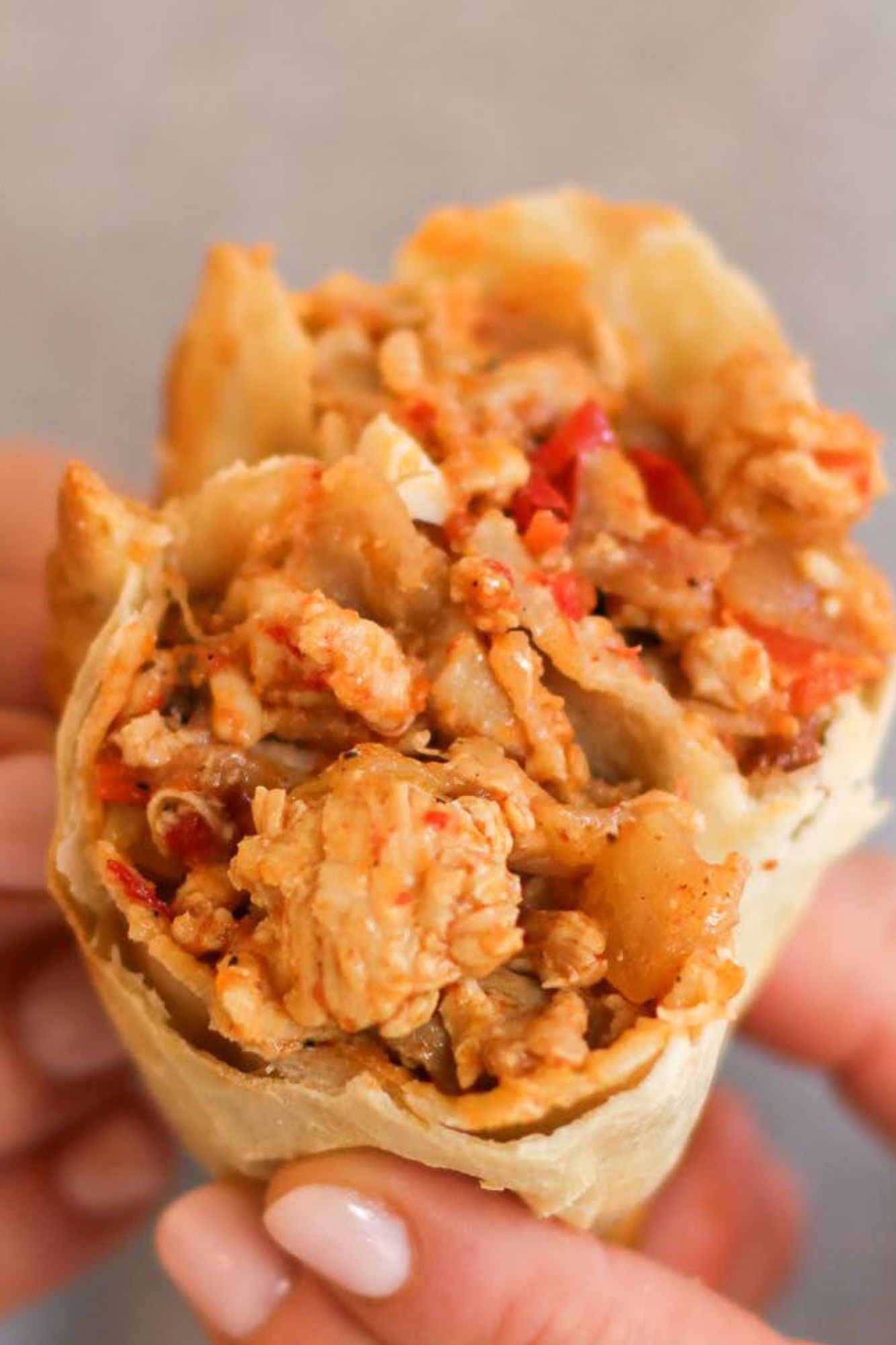 Inside, you’ll find a mouthwatering blend of juicy chicken breast, sautéed onions, sweet bell peppers, and perfectly balanced seasonings.