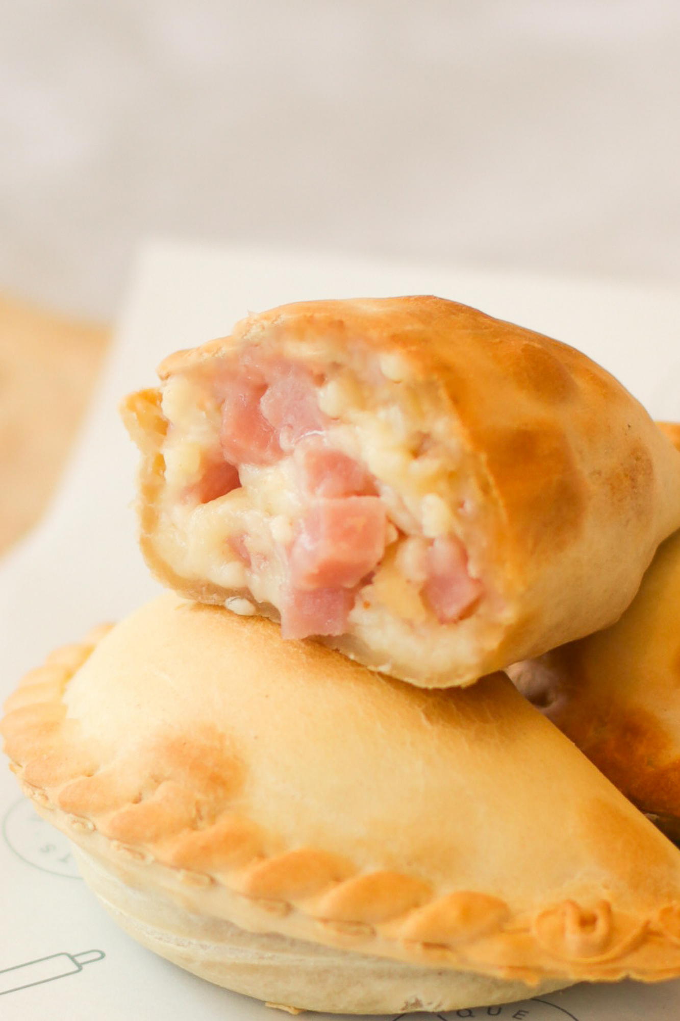 This empanada brings together the perfect pairing of tender ham and gooey melted cheese.